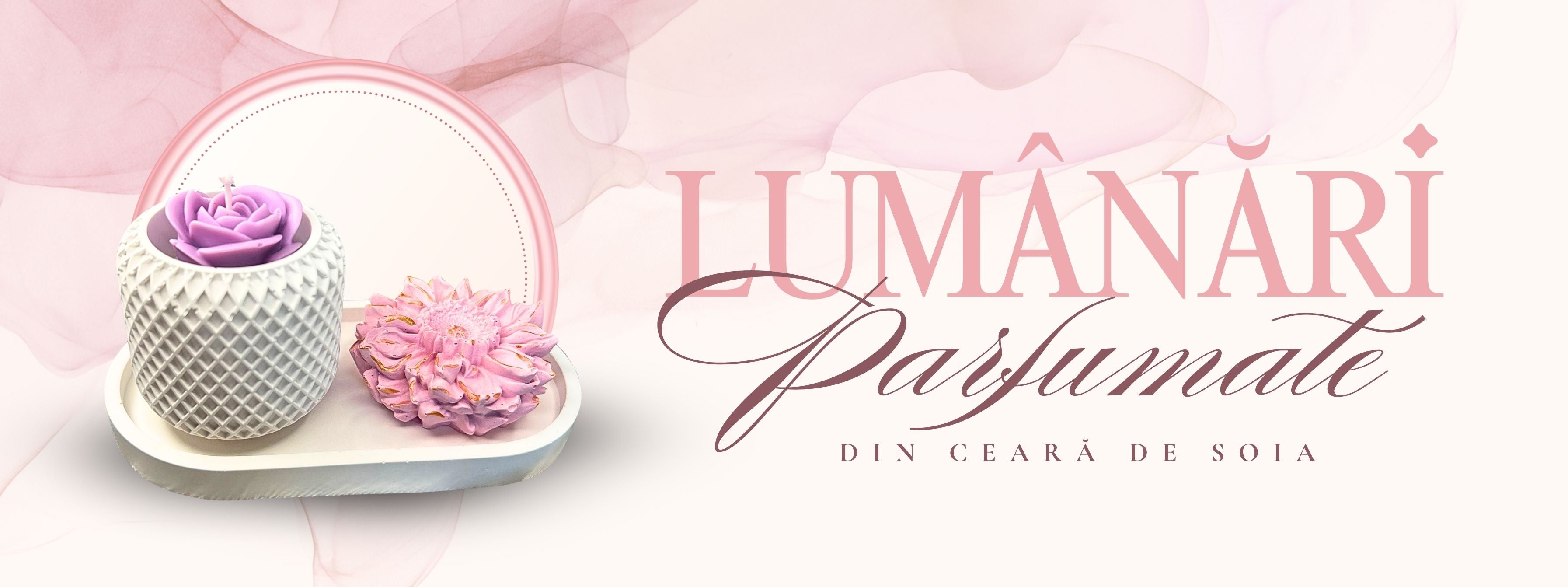Lumanare in recipient ceramic cu capac si tavita alba- Floare roz